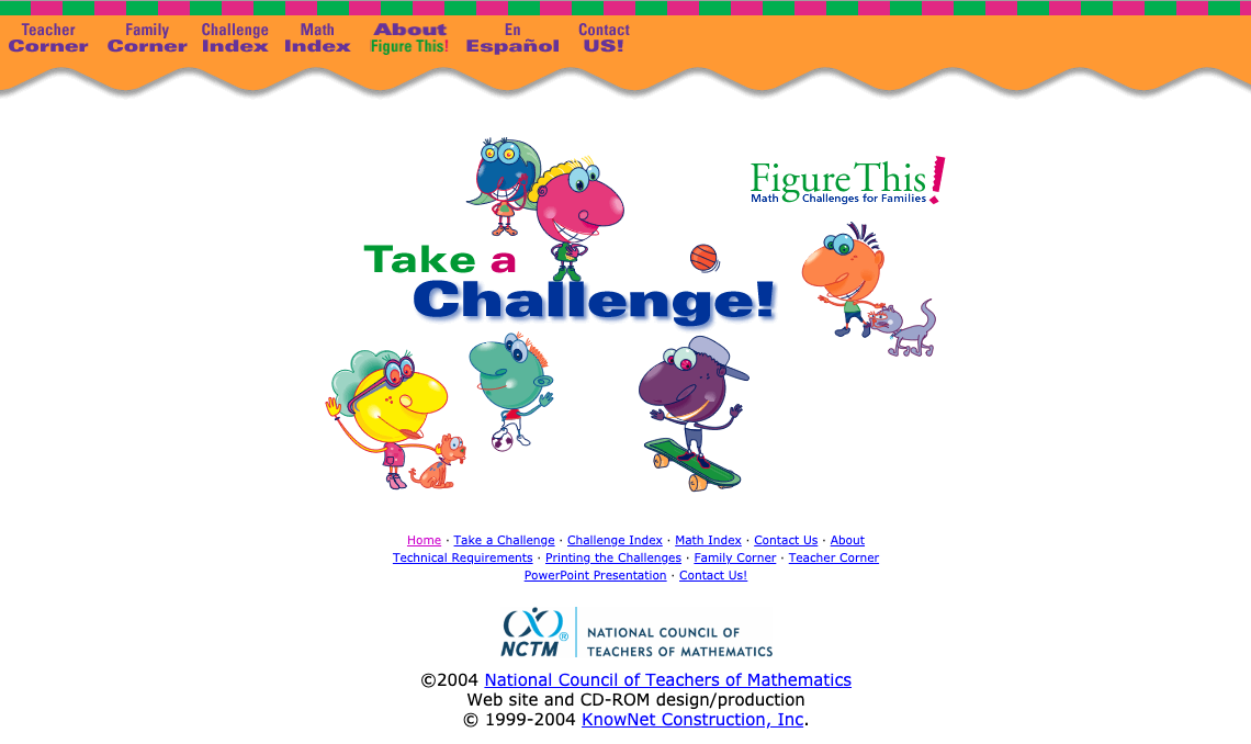 The National Council of Teachers of Mathematics sponsors this, Take a Challenge Web site that has 80 problem-solving challenges that can be used for algebra and geometry students. The site is also available in Spanish.