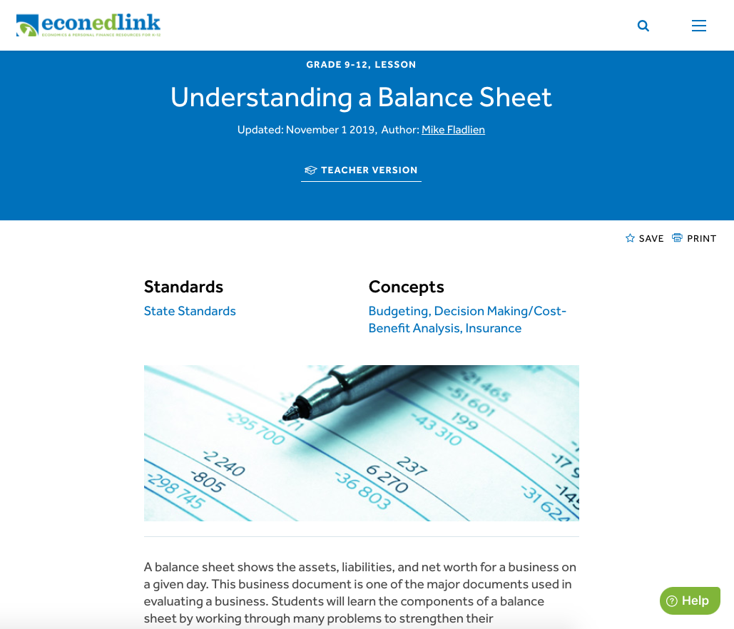 Students will understand the importance of learning to use a balance sheet.