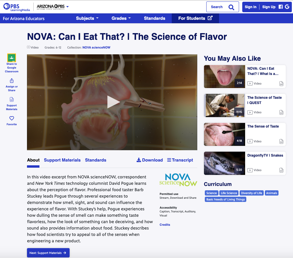 The Science of Flavor.png - Screenshot of PBS Learning Media's NOVA: Can I Eat That The science of Flavor Lesson Plan